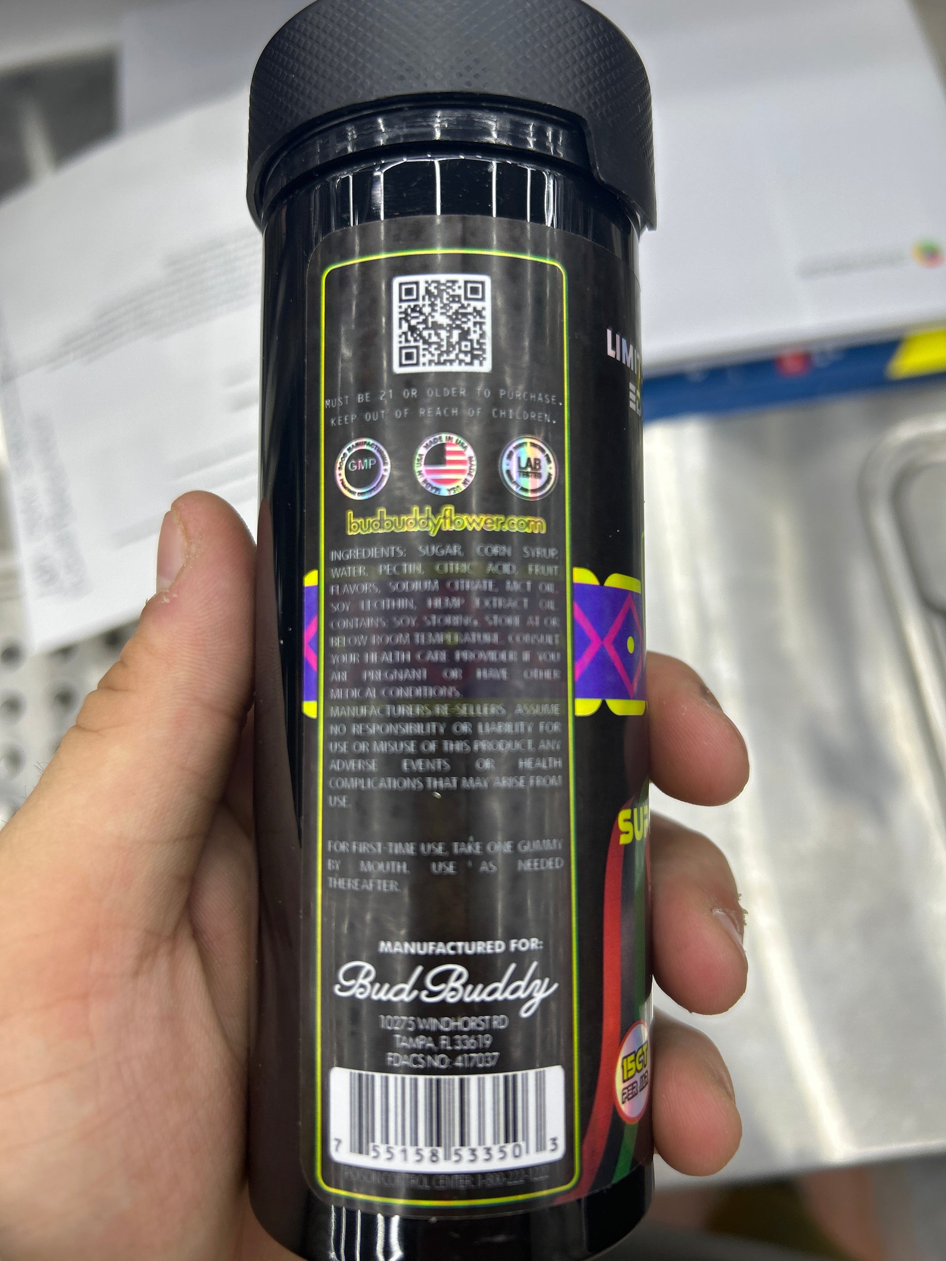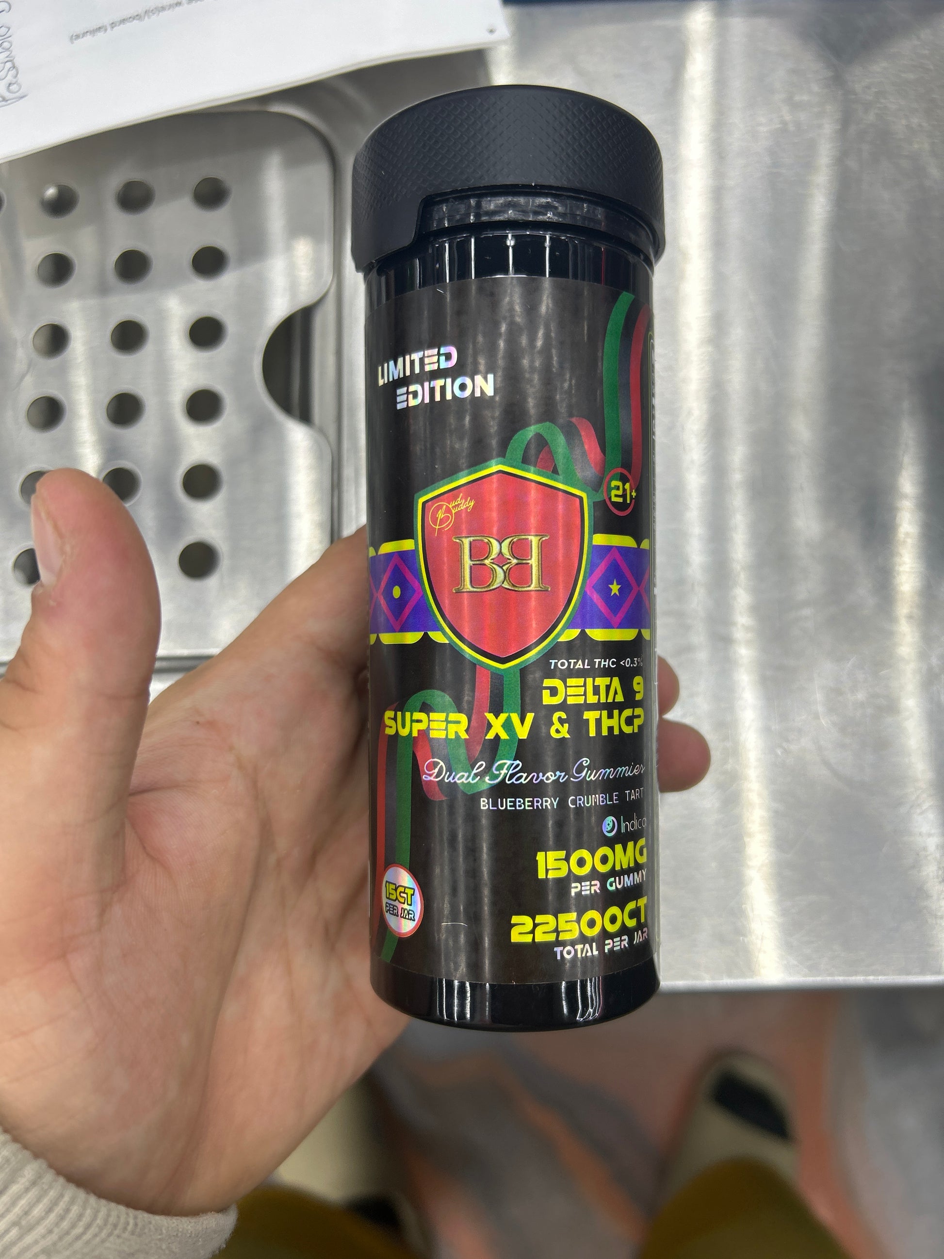 Bud buddy delta 9 super XV & thcp dual flavor gummies 1500mg per gmmy 22500mg jar berry gelato cream indica