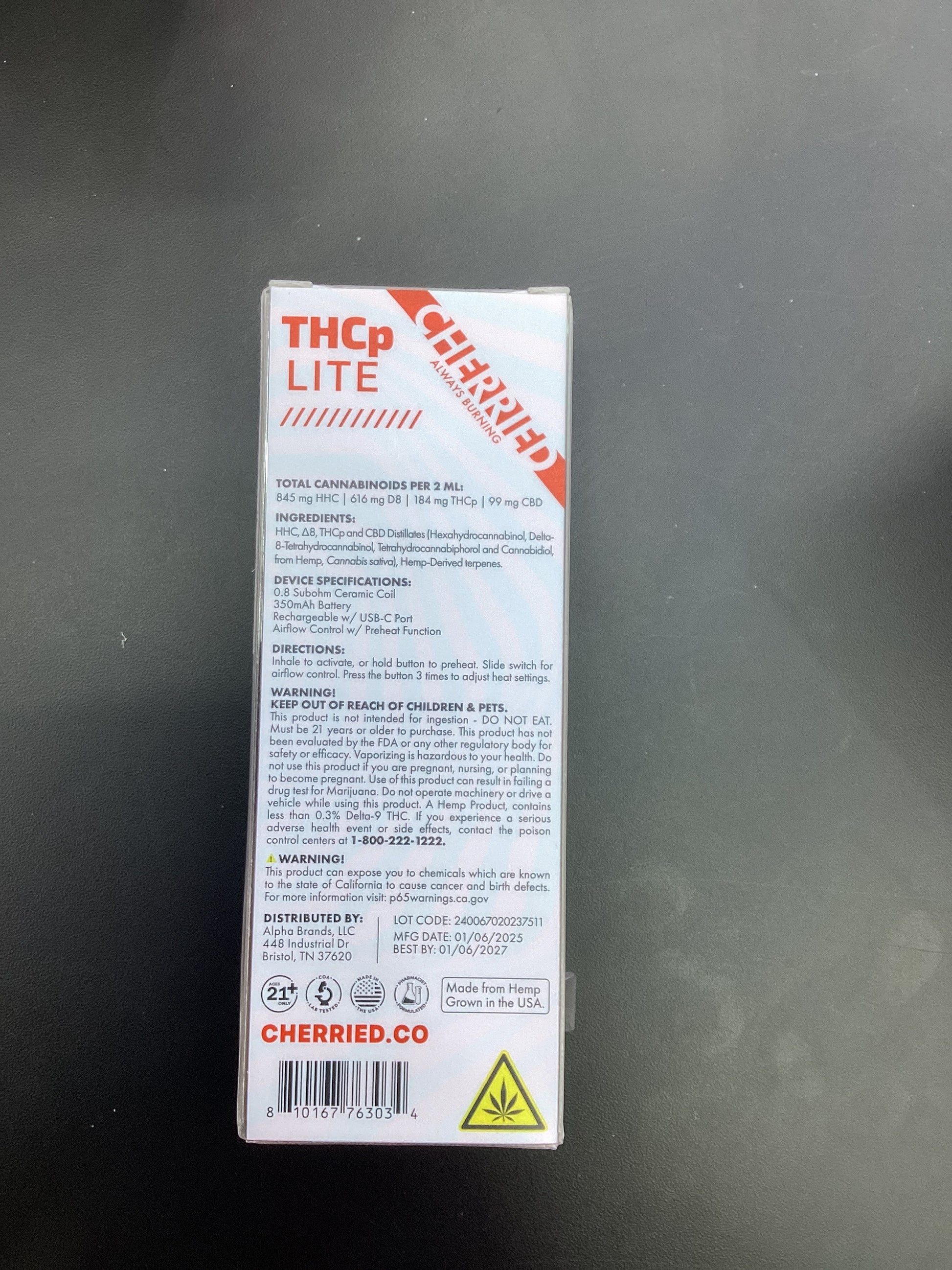 Cherries thcp lite 2g dispo blackberry kush indica