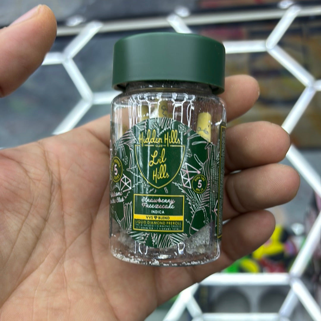 Hidden Hills club lit hills strawberry freeze cake,, indica, VVS blend liquid diamond pre-rolls