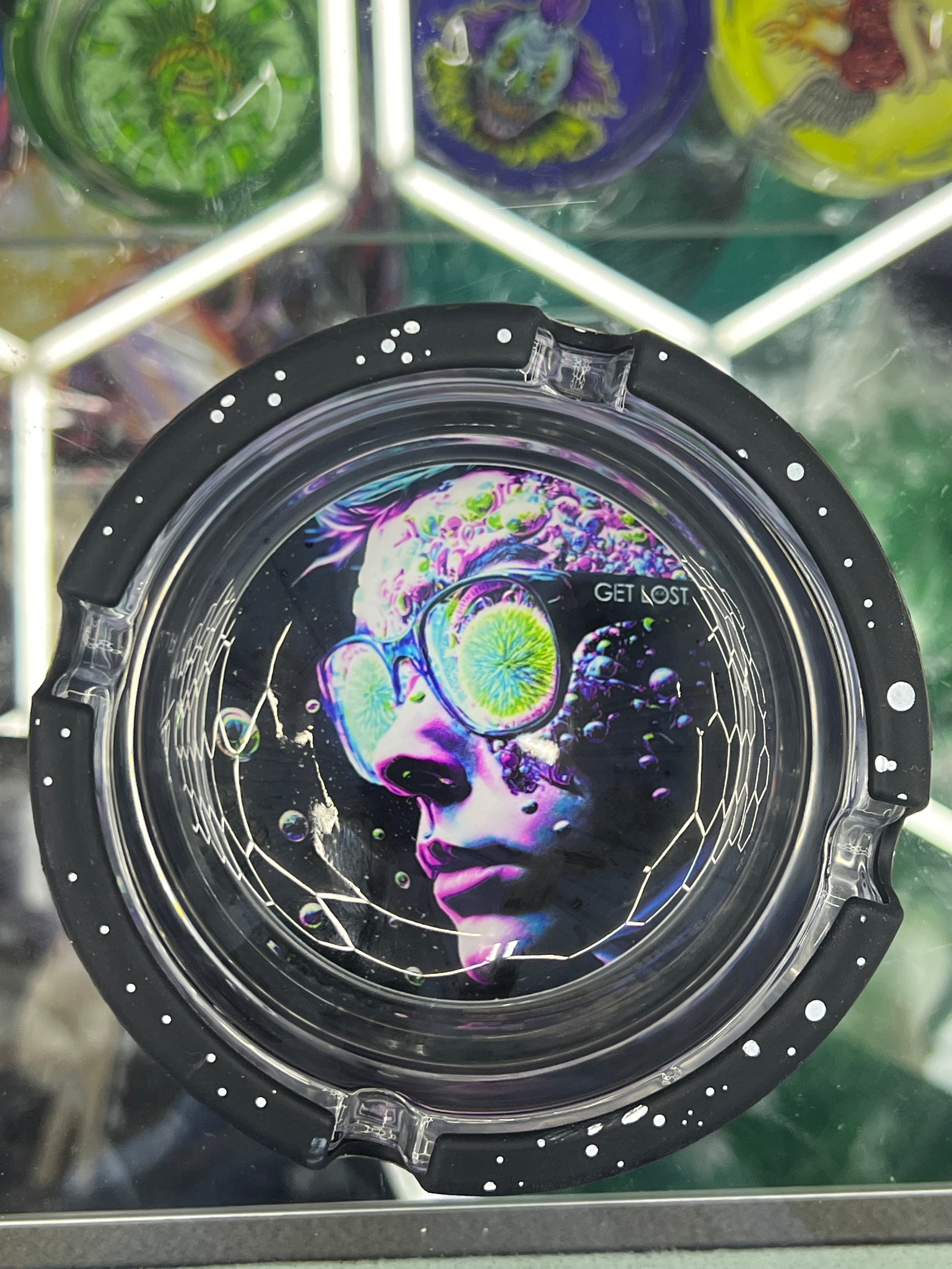 Get Lost glass ashtray with silcone cover