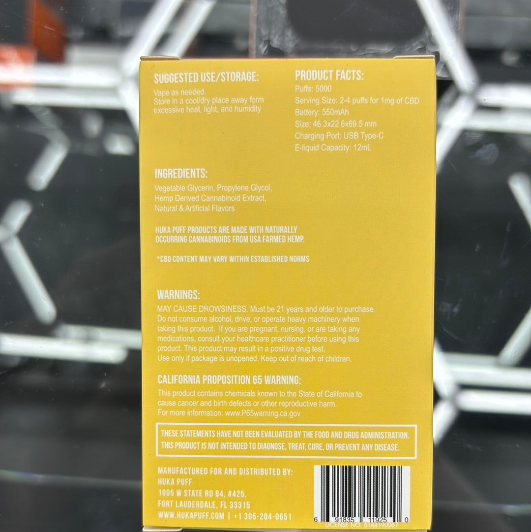 Huka puff 5000 CBD puffs 1200 mg CBD peach cream
