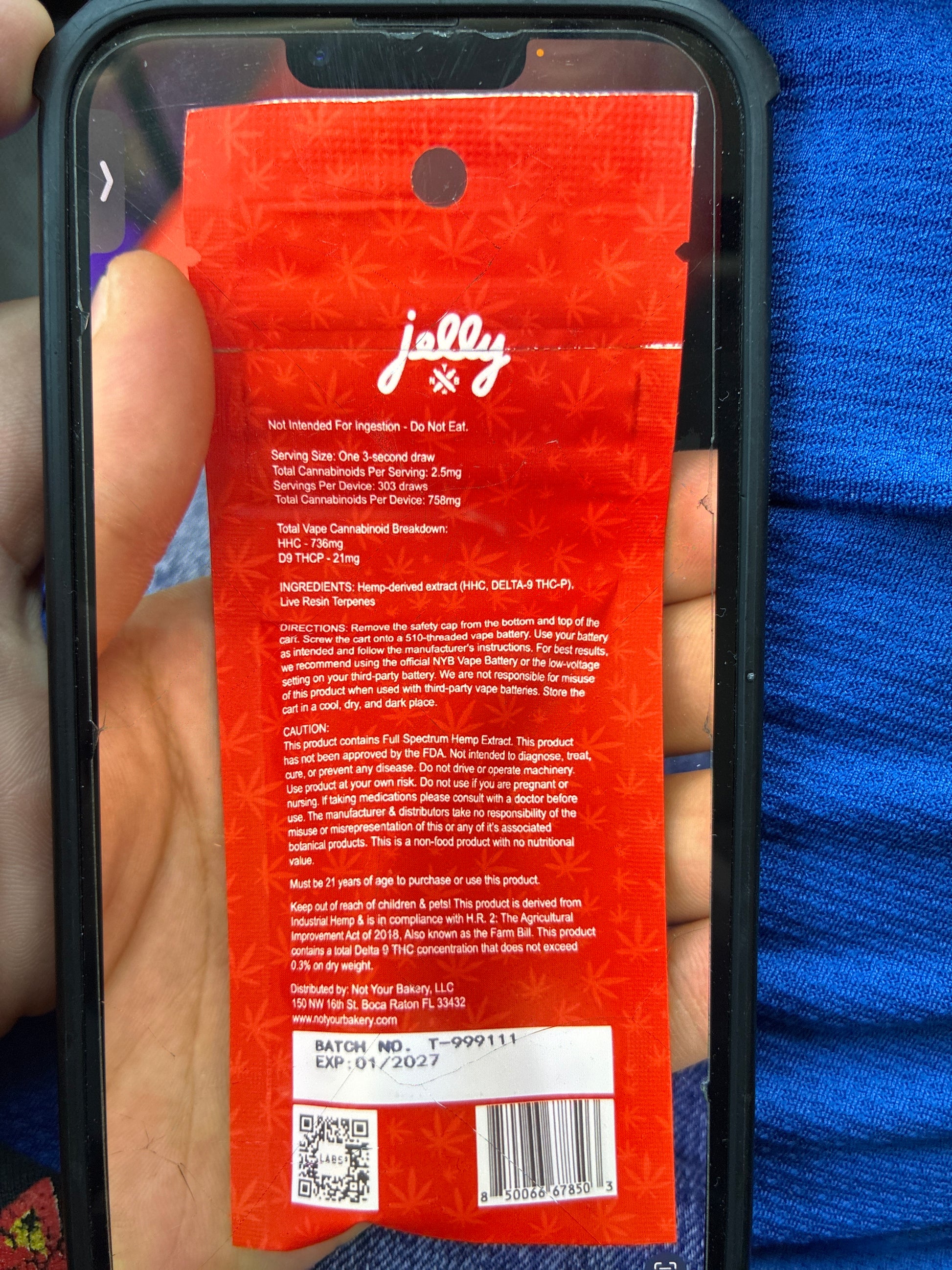 Jelly NYB masterblend 1g cartridge cherry gelato indica