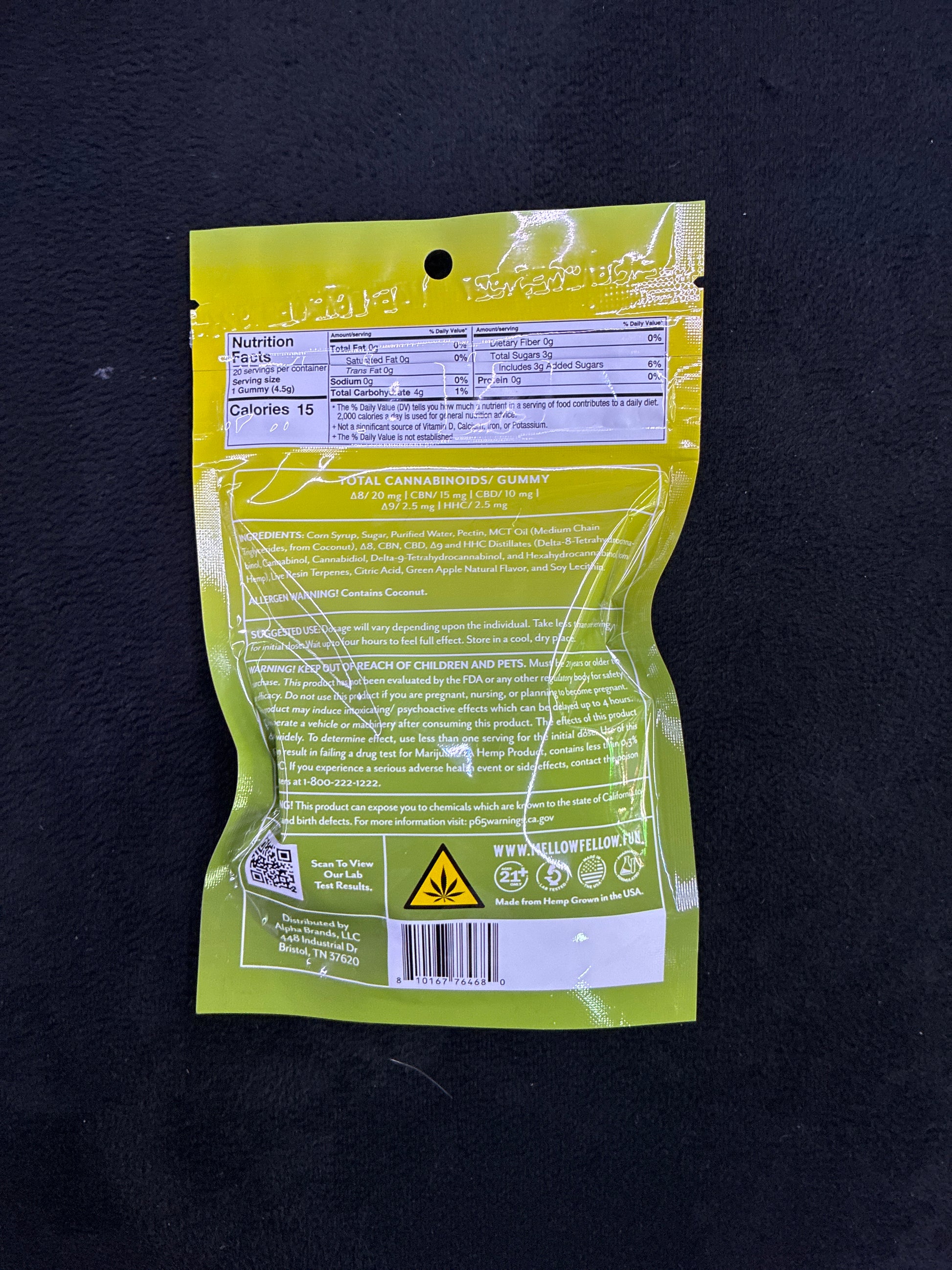 Mellow Fellow Dream live resin blend gummies 20 pack green apple